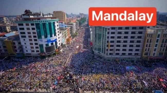 Las organizaciones sindicales convocaron una huelga general el lunes 22 de febrero de 2021 para protestar contra el golpe militar. Exigen que se respeten los resultados de las elecciones celebradas en noviembre de 2020 y que se libere a todos los líderes políticos y activistas detenidos. Calculan que unos 12 millones de personas se sumaron a la huelga, que afectó a todos los sectores económicos. En las ciudades más importantes del país hubo manifestaciones multitudinarias. Esta es la reacción popular más significativa y con mayor seguimiento ante el golpe de estado del 1 de febrero.