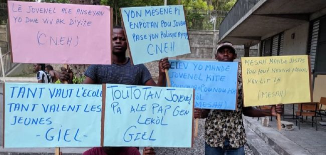 Por eso, todas las afiliadas de la Internacional de la Educación (IE) en Haití están denunciando la corrupción al más alto nivel del gobierno y participan en manifestaciones desde hace varias semanas para exigir que el Presidente de la República cese de su cargo. Además, mientras las escuelas y las universidades permanezcan cerradas, el personal docente no cobrará su salario.